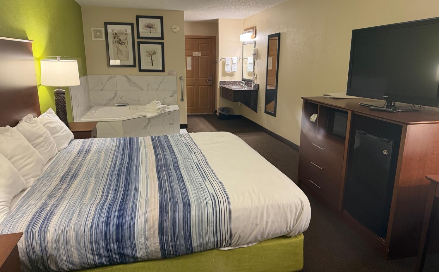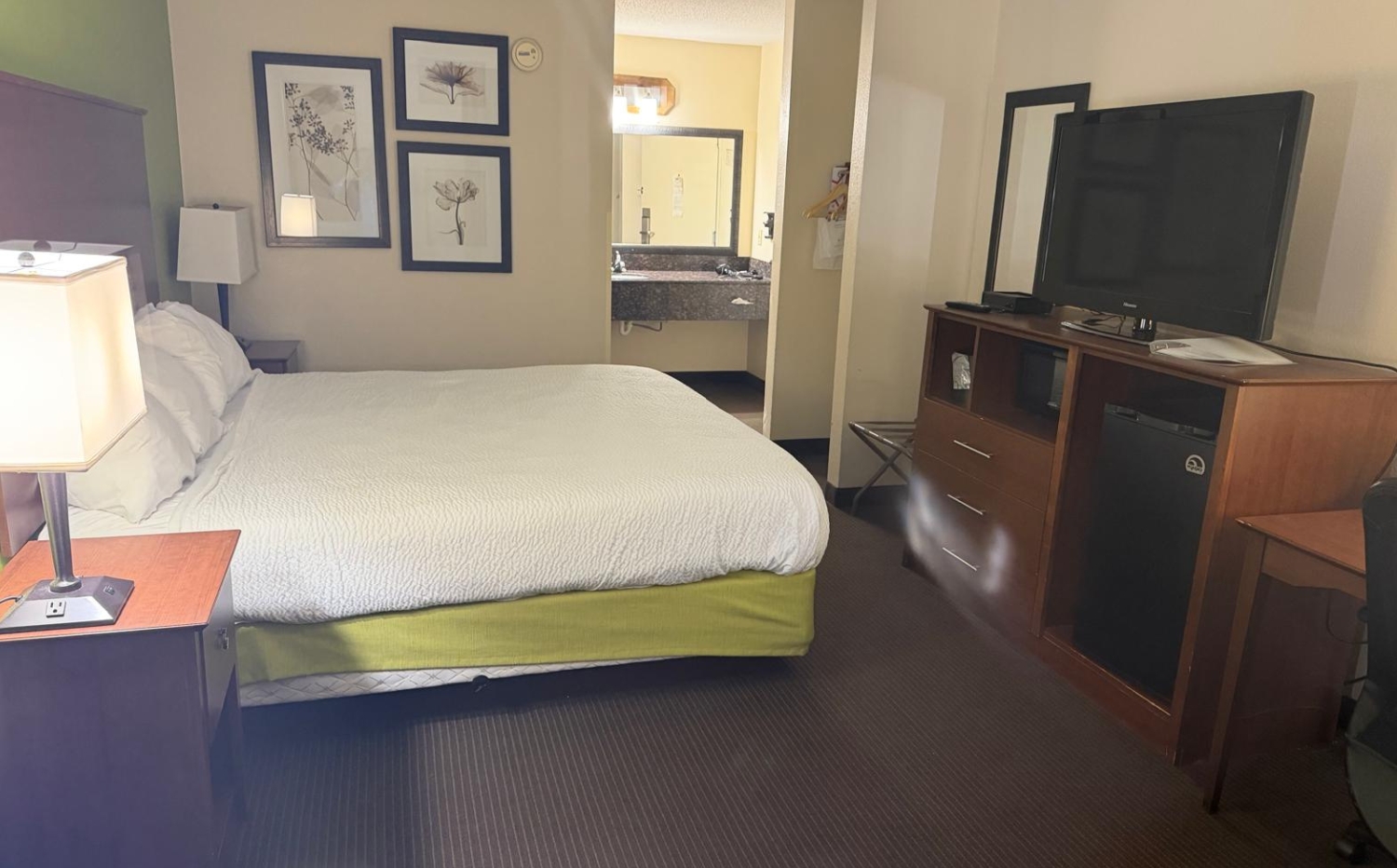 We were very pleased with our room - clean, quiet, and comfortable. The bed was especially comfortable. We love the location and convenient parking.